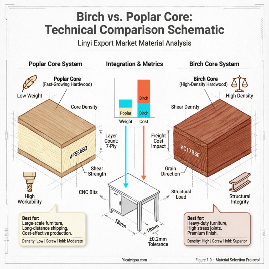 If your priority is cost-efficiency and light weight, choose Poplar. If your priority is structural integrity and aesthetic edges, invest in Birch. For most B2B furniture projects, a Birch-face/Poplar-core (B/P) combination offers the best value-to-performance ratio.