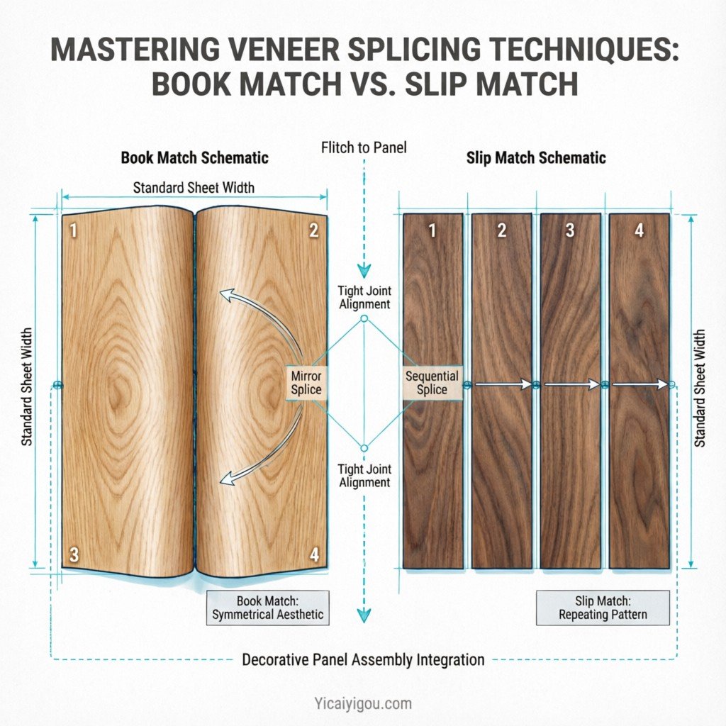 Mastering Veneer Splicing Techniques: Book Match vs. Slip Match for Decorative Panels In the high-stakes world of interior architecture and fine woodworking, the difference between a good project and a great one often lies in the details. Nowhere is this more evident than in the selection and application of wood veneer. For industry professionals and